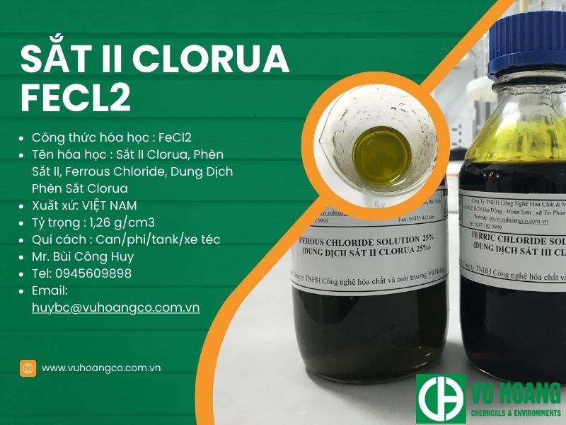 Dung Dịch Phèn Sắt Clorua FeCl2, hay còn gọi là clorua sắt (II), là một hợp chất hóa học có tính độc hại và ăn mòn cao. Nó được sử dụng trong việc xử lý nước rỉ và có thể mua bán với hàm lượng từ 15% đến 30%. FeCl2 có dạng dung dịch màu xanh nhạt và dễ bị cháy rửa. Nó cũng có thể bị ô xi hoá thành sắt (III) clorua (FeCl3). FeCl2 được sử dụng trong nhiều ngành công nghiệp khác nhau và có thể mua tại các công ty hóa chất uy tín.